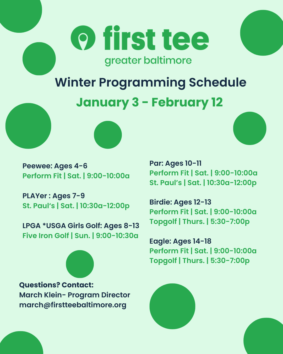 Winter Programming Schedule